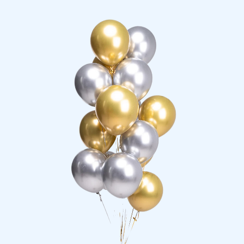 - Серебристые и золотые гелиевые шарики 12 шт;