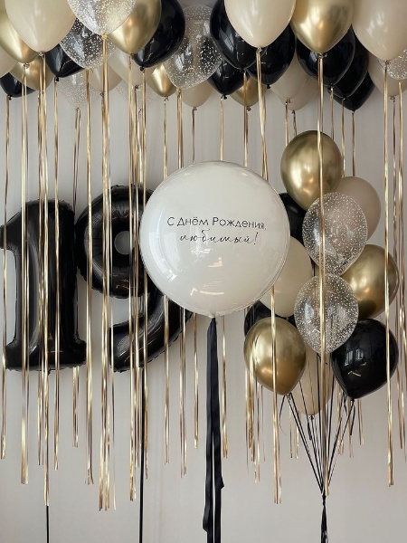 - Гелиевые шары хром и шарики с конфетти 50 шт;