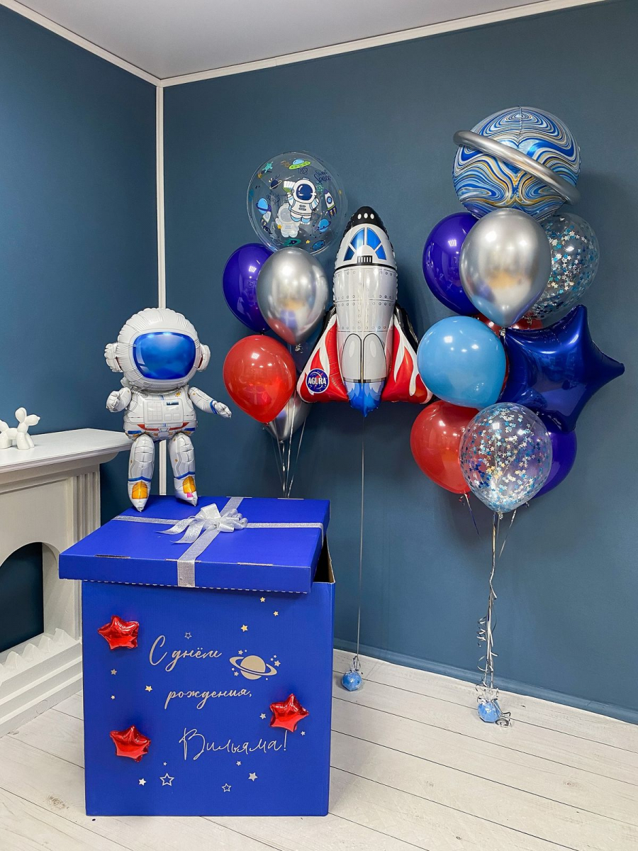 Коробка с шарами «Освоение космоса» в интернет-магазине OCEAN BALLOONS. Заказать с доставкой! Тел.: +7 (495) 773-43-75.